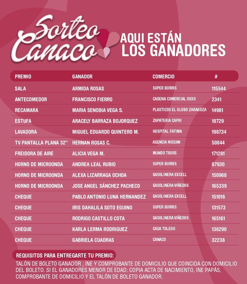 ‼ YA ESTA LA LISTA DE GANADORES DEL SORTEO CANACO 2020‼
