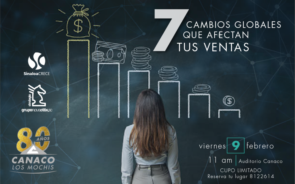 ¿ Por qué venden más otros que tú? ¿Crees que tu sector está cambiando las reglas del juego?¿Qué tanto sabes de tu mercado actual? ¿Subir tus precios representa un gran reto? Si todo esto te preocupa, te invitamos al curso 7 CAMBIOS GLOBALES QUE AFECTAN TUS VENTAS. Viernes 09 de Febrero. 11:00 am, Auditorio Canaco.