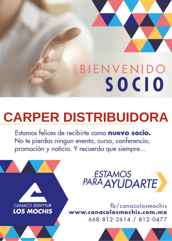 Bienvenido.- CARPER DISTRIBUIDORA Abr 16, 2021 Clarissa Flores Afiliación, comercio, Noticias #BIENVENIDO a Canaco Servytur Los Mochis Gracias por formar partes de este organismo empresarial…..CARPER DISTRIBUIDORA 😀👍️‼️Seguimos creciendo, gracias por la confianza‼️