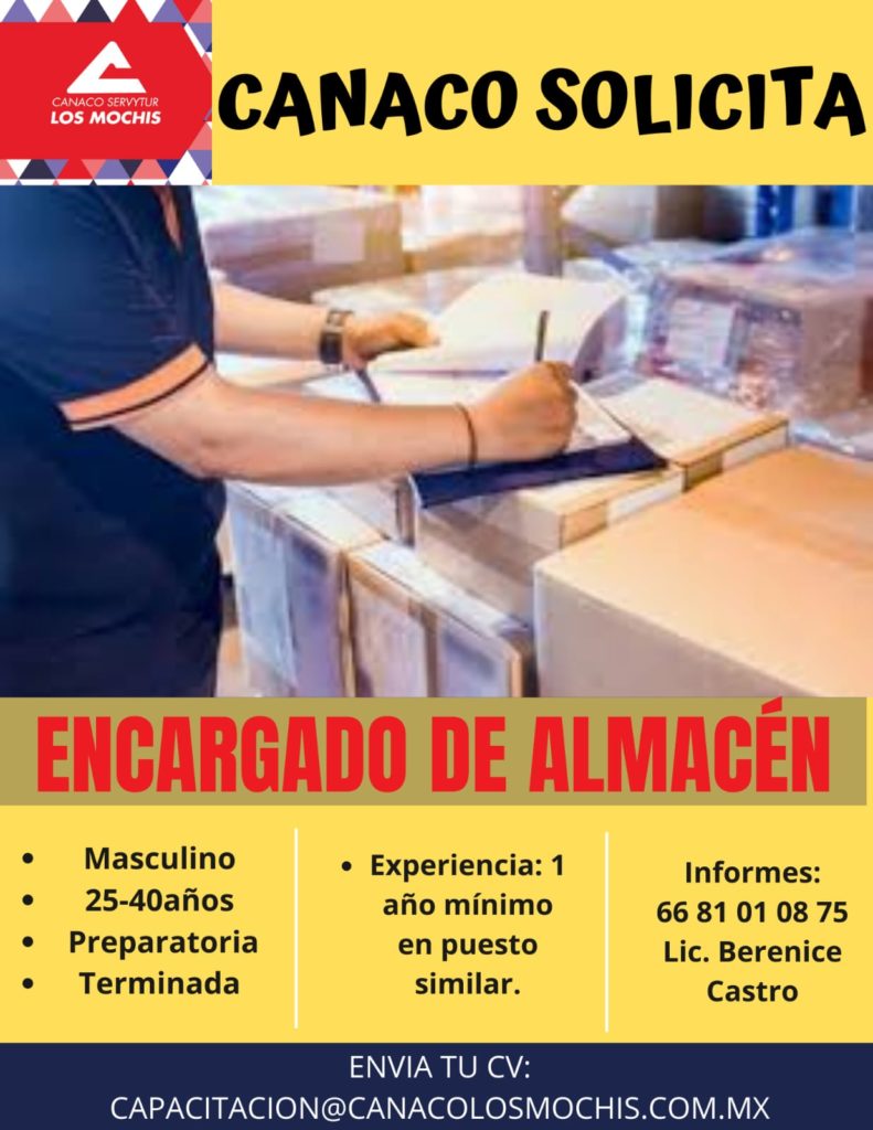 📣 #BolsadeTrabajo Canaco Servytur Los Mochis solicita :📣‼️‼️ ENCARGADO DE ALMACÉN