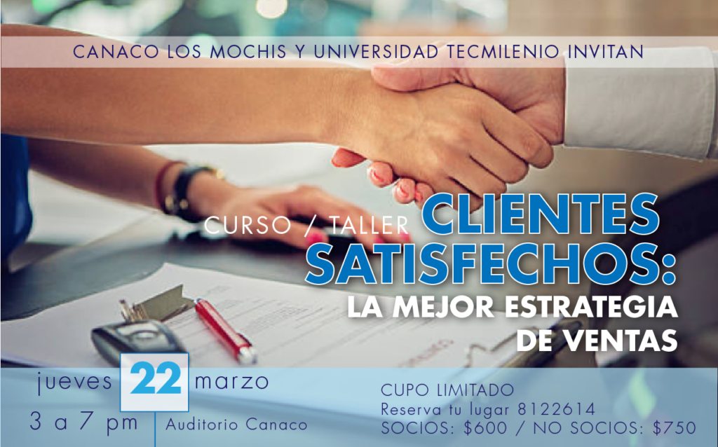 Es por eso que Canaco Los Mochis y Universidad TecMilenio presentan el nuevo taller «Cliente Satisfecho: La mejor estrategia de Ventas» con los siguientes beneficios: