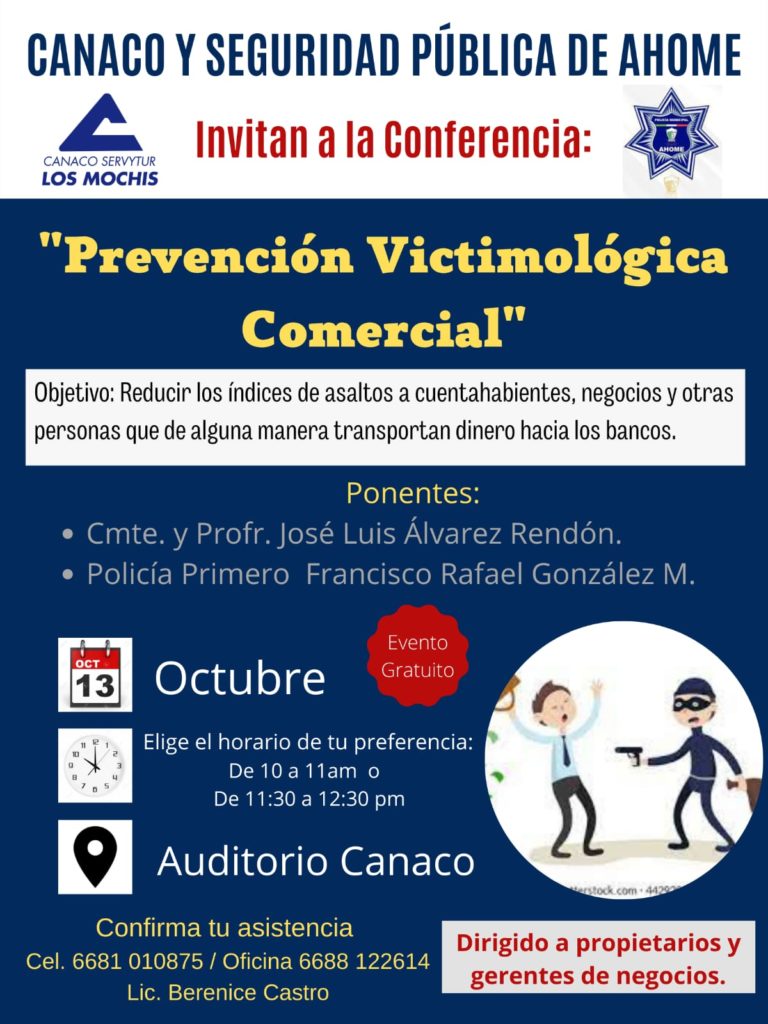 Canaco Servytur Los Mochis te invita a la Conferencia gratuita presencial 📣📣 «Prevención Victimológica Comercial»”.