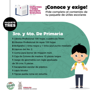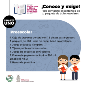 Contenido Paquetes Escolares Ago 08, 2018 Clarissa Flores Noticias, Servicios ¡Conoce e identifica los artículos que deben de contener los paquetes de útiles escolares que serán entregados por Gobierno del Estado de Sinaloa! 📝🖍️🖌️📙📚📄