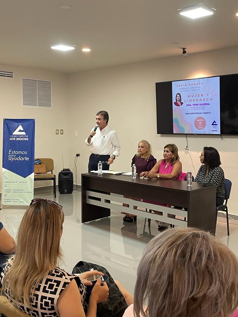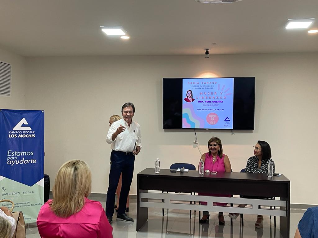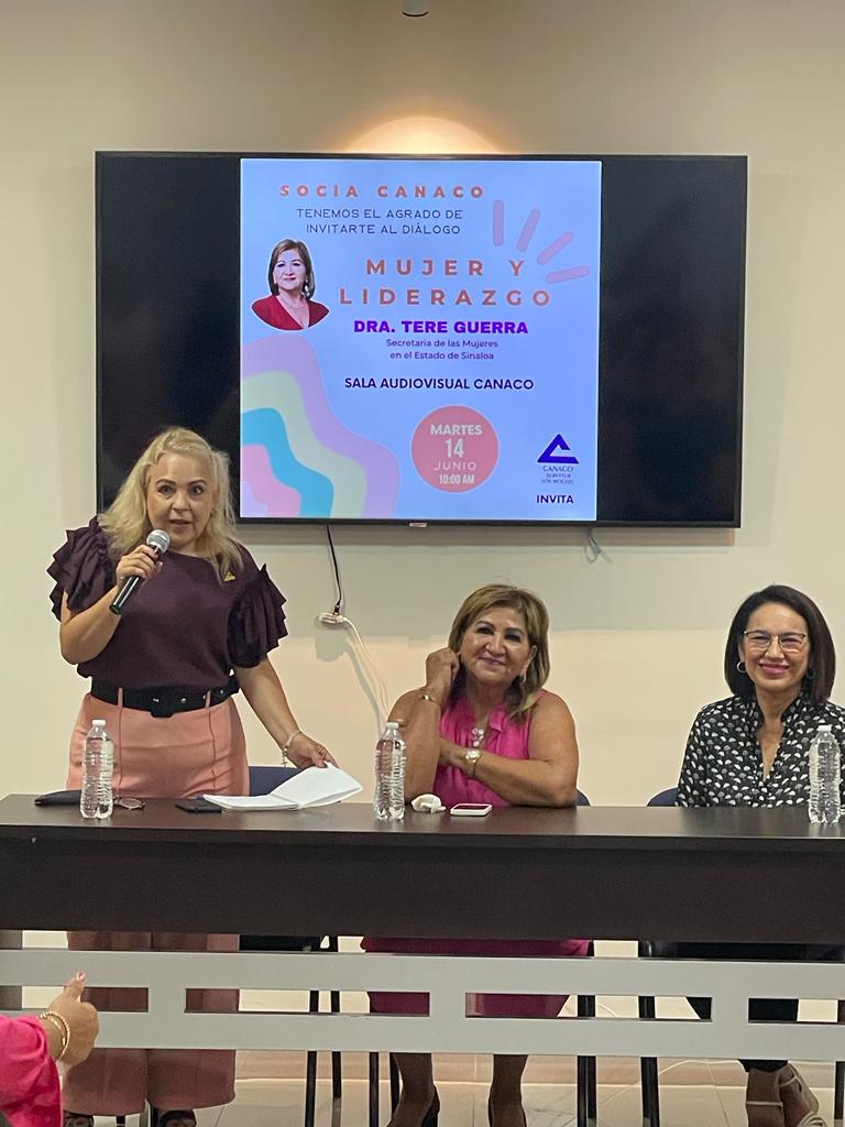 Esta mañana se llevo a cabo el dialogo entre Mujeres titulado «MUJER Y LIDERAZGO «, mismo que fue impartido por la Dra. Tere Guerra, Titular de la Secretaria de Mujeres en el Estado de Sinaloa. Quien se reunió con socios de nuestro organismo empresarial.