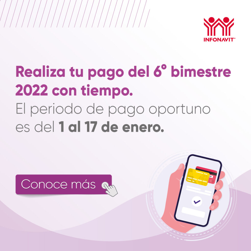 PAGO OPORTUNO de las cuotas INFONAVIT del 6to. Bimestre 2022 Ene 12, 2023 Clarissa Flores Afiliación, Bolsa de trabajo, capacitacion, comercio, Eventos, Noticias, Servicios, tips En Canaco Servytur Los Mochis Te recordamos no dejes pasar «PAGO OPORTUNO de las cuotas INFONAVIT del 6to. Bimestre 2022»Para más información ingresar al siguiente link• https://bit.ly/3i3pyyl