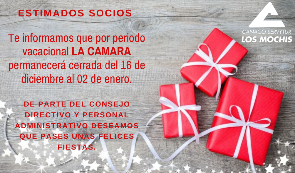 PERIODO VACACIONAL Dic 13, 2019 Clarissa Flores Afiliación, Bolsa de trabajo, capacitacion, comercio, cursos, Eventos, Noticias, Servicios, tips, Uncategorized, vacantes Feliz Navidad y Prospero Año NuevoQue esta época de Navidad este llena de felicidad, y que en tu hogar se encienda la luz de la fe y el amor 🎄☃️❄️🎅