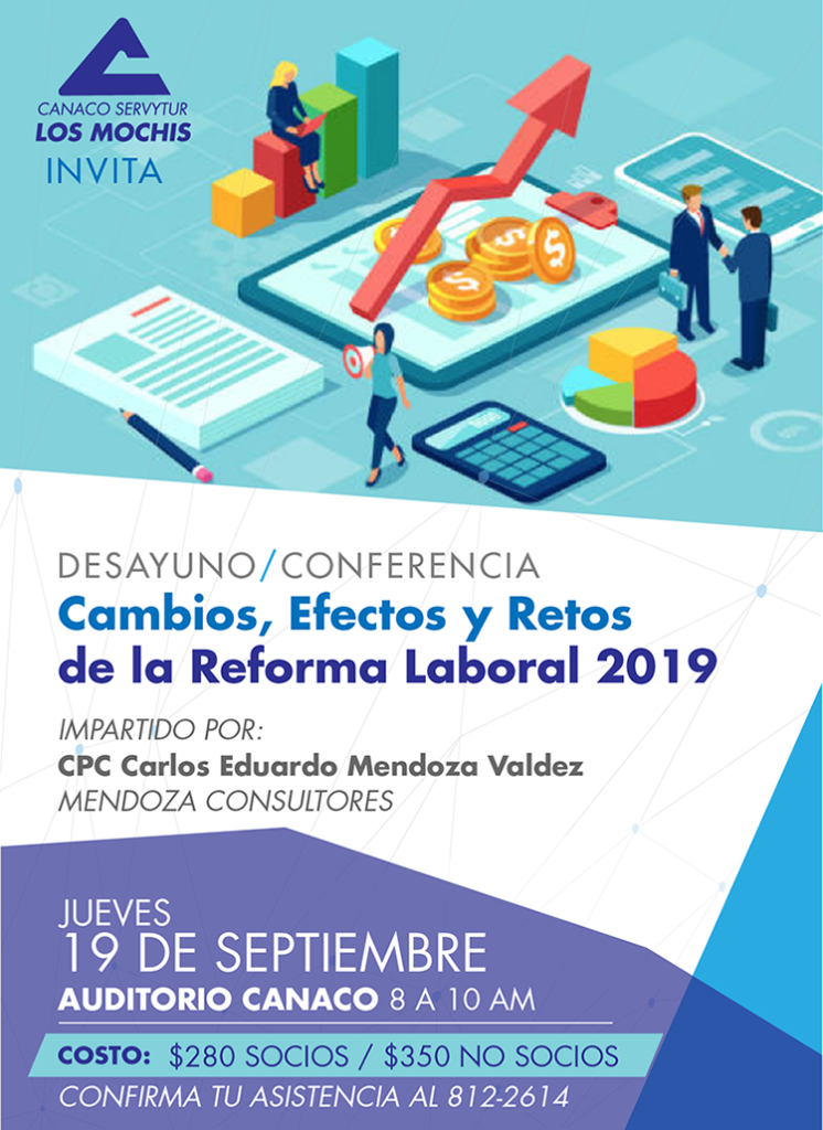 Te invitamos al desayuno/conferencia con el CPC Carlos Eduardo Mendoza Valdez, el próximo jueves 19 de septiembre, de 8 a 10 am, en el Auditorio Canaco. Costo: $280 SOCIOS, $350 no socios.