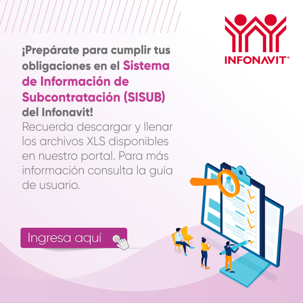 Ya cumpliste con tus obligaciones en el del “SISTEMA DE INFORMACIÓN DE SUBCONTRATACIÓN (SISUB)” del Instituto del Fondo Nacional de la Vivienda para los Trabajadores (Infonavit), recuerda ingresar al portal y descargar y llenar los archivos XLS.